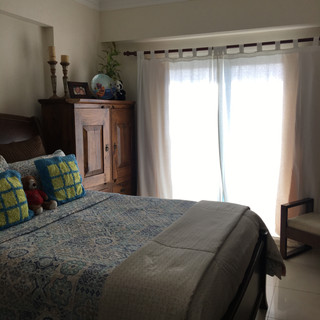 3.. Cambiamos las cortinas. Las que tenían anteriormente, era colores tierra; aunque podían combinarse con la colcha, preferimos usar una lisa y color blanco. Esto permitirá, que puedan usar cualquier colcha y ser, fácilmente, combinable.