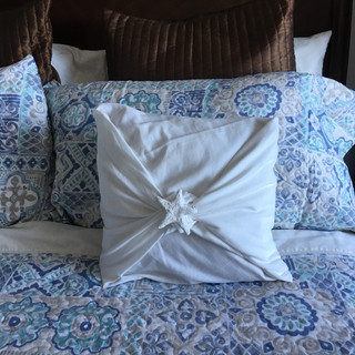 2. Agregamos elementos de decoración, colores crema, para complementar la colcha y no sobrecargar con colores azules.